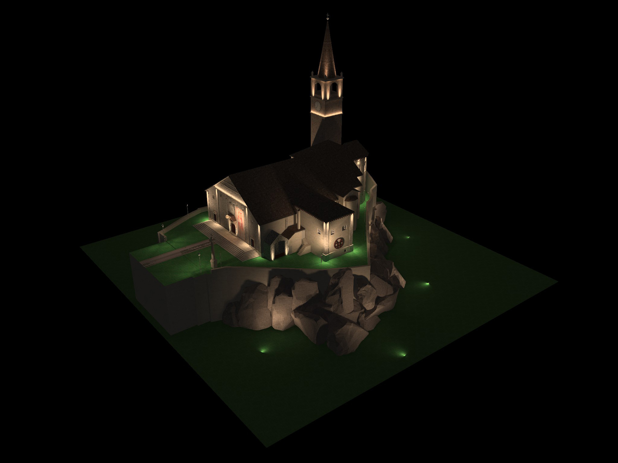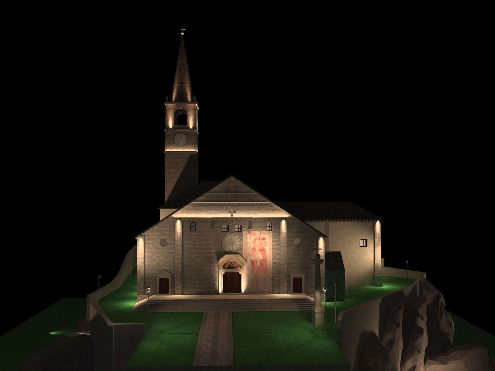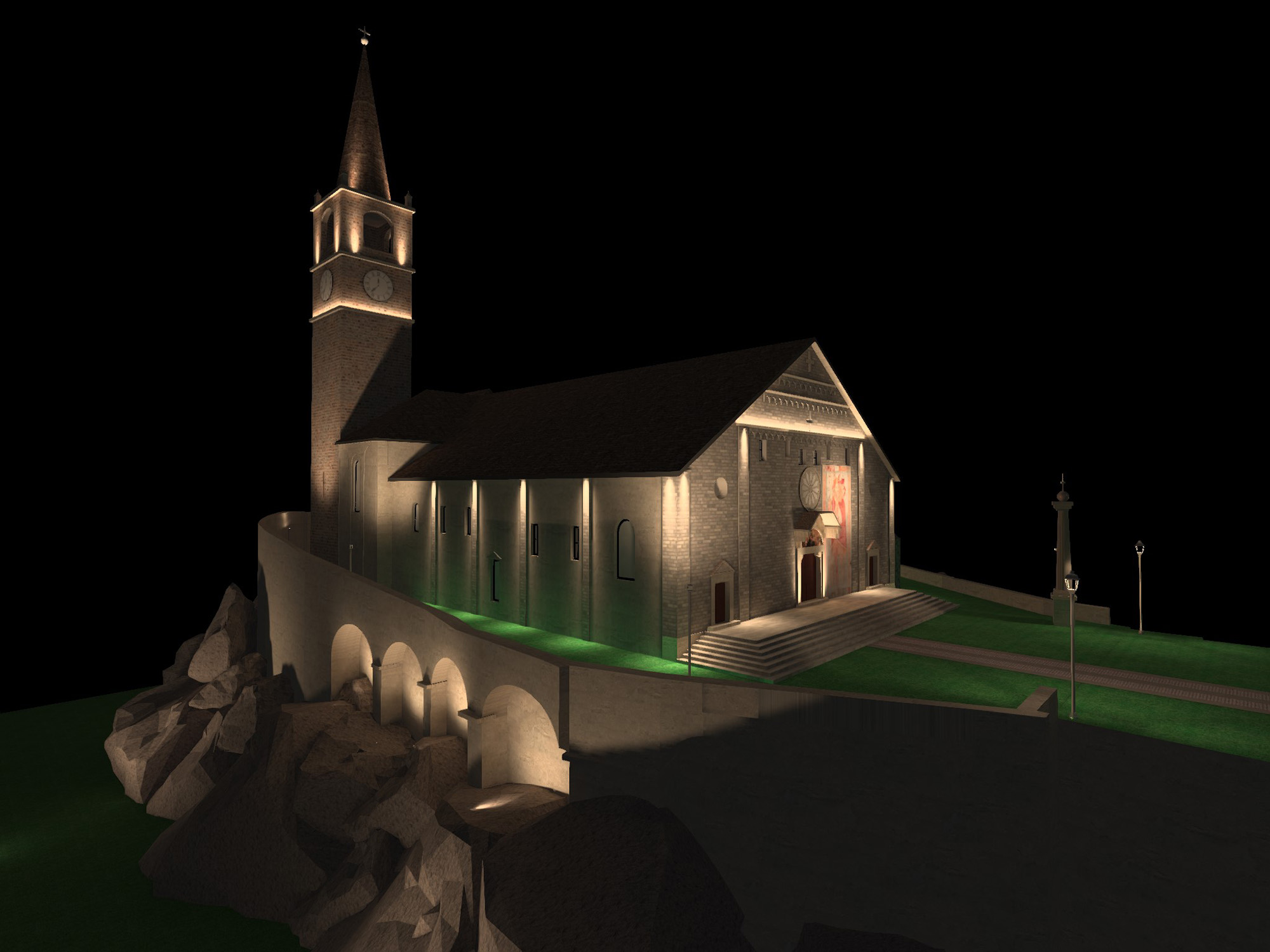 Fin dall’antichità la luce svolge un ruolo chiave nella realizzazione dei luoghi di culto. L’illuminazione artificiale amplifica la percezione delle opere d’arte, dell’architettura e dello spazio. Enfatizzando il contrasto tra chiari e scuri, dona ritmicità all’ambiente per evitare uno sterile appiattimento generale.