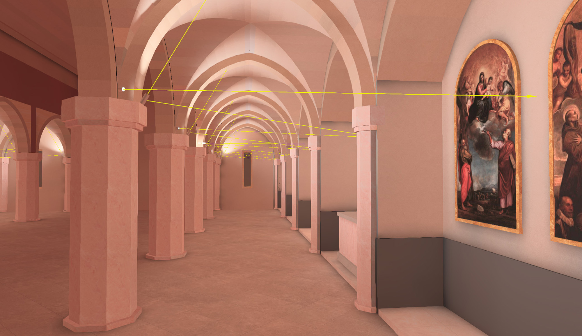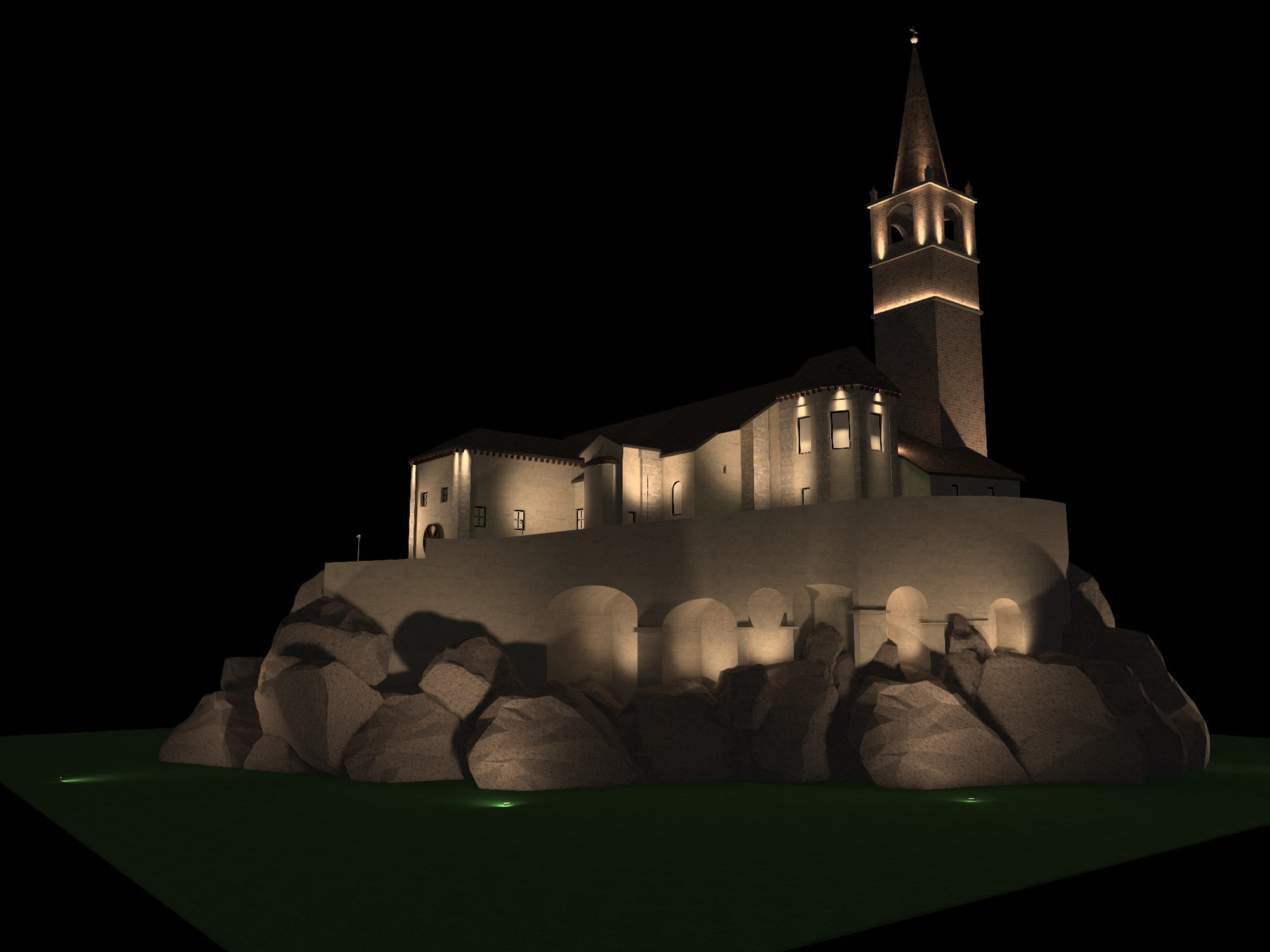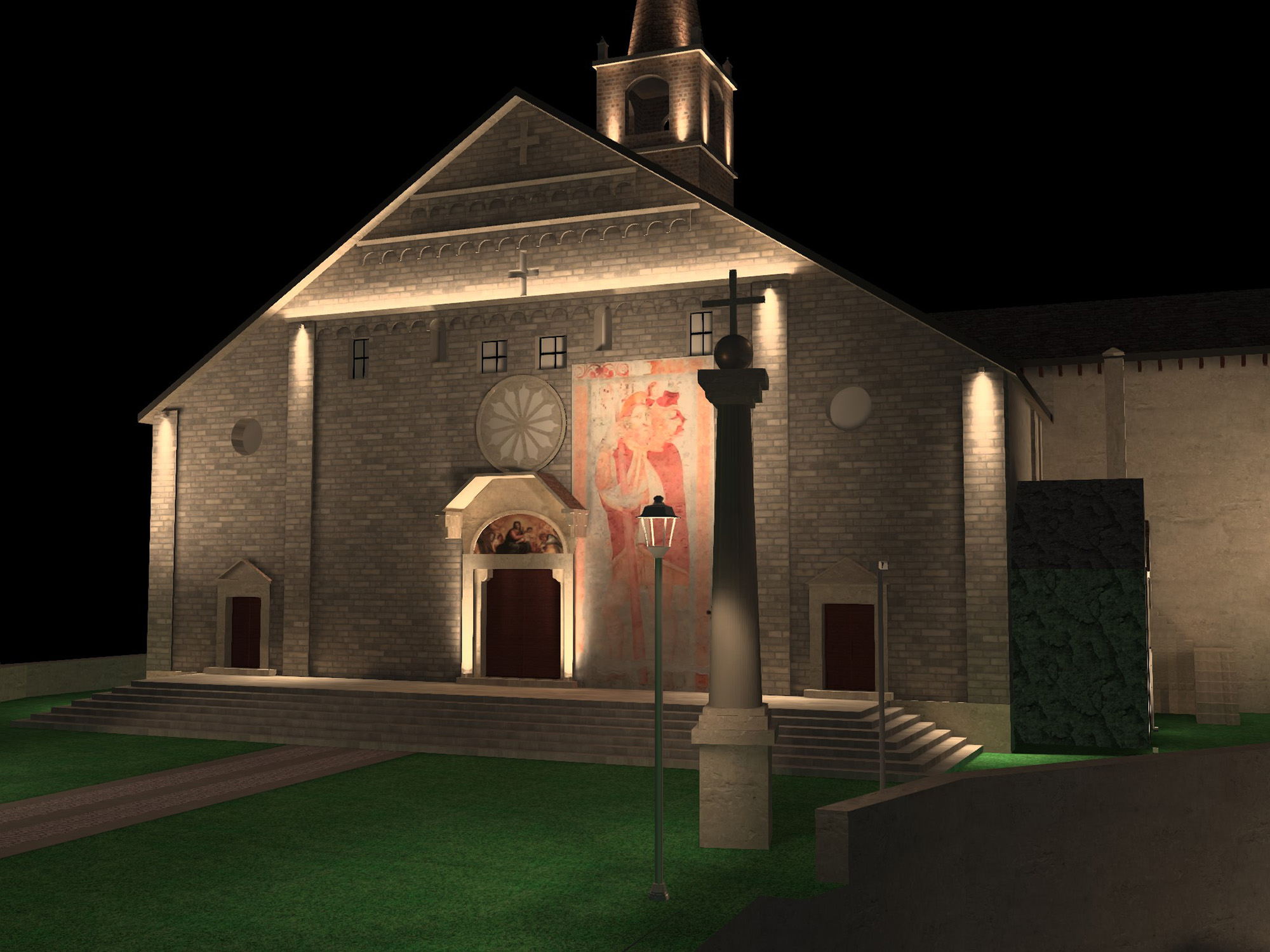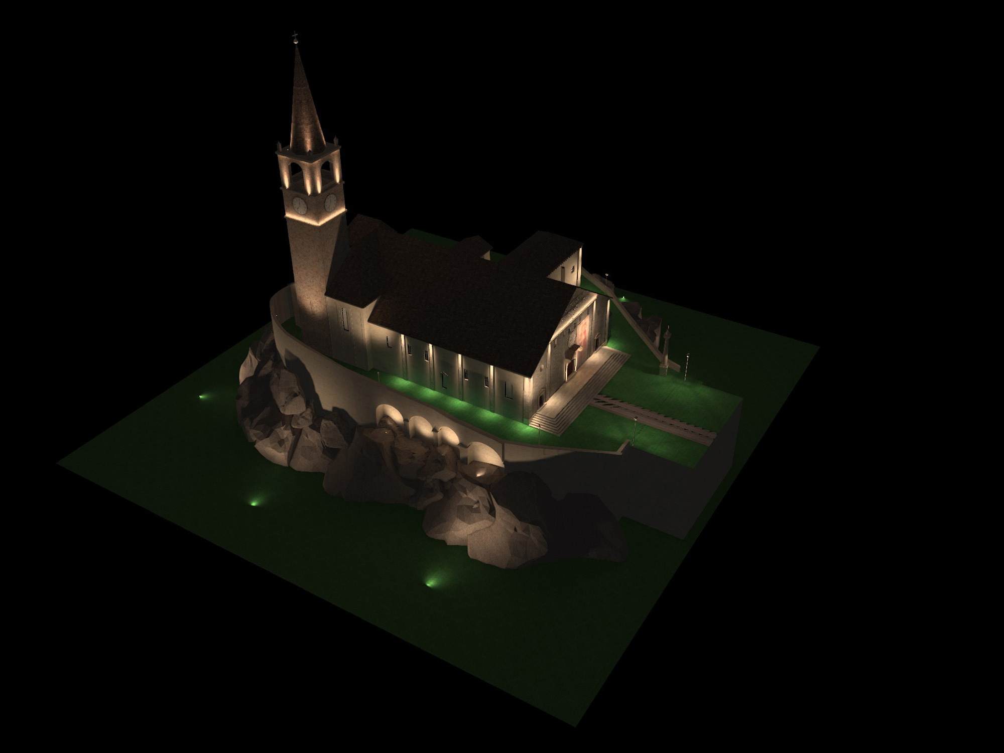 Fin dall’antichità la luce svolge un ruolo chiave nella realizzazione dei luoghi di culto. L’illuminazione artificiale amplifica la percezione delle opere d’arte, dell’architettura e dello spazio. Enfatizzando il contrasto tra chiari e scuri, dona ritmicità all’ambiente per evitare uno sterile appiattimento generale.